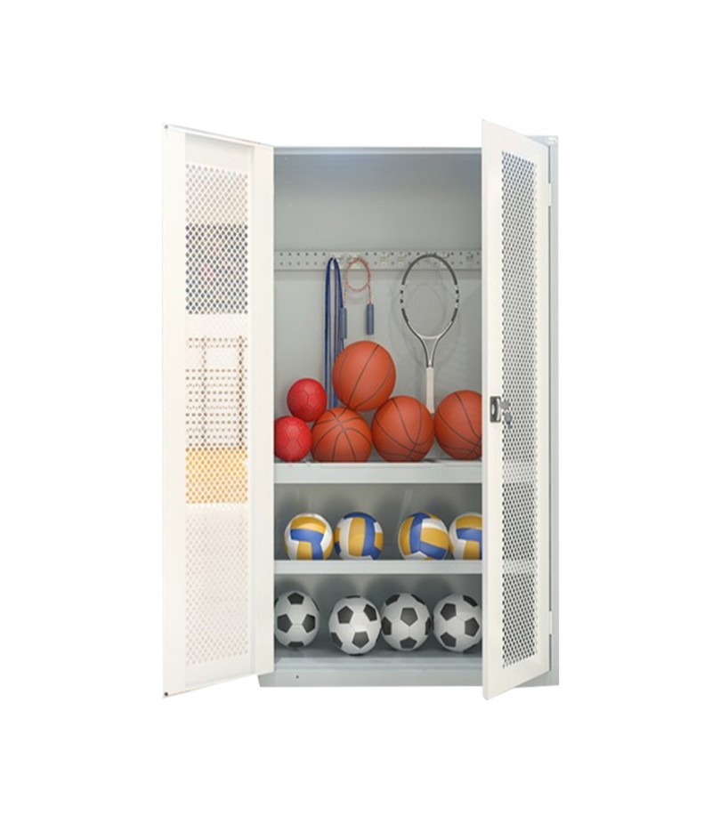 Kovová skriňa do telocvične na lopty a iné športové náčinie.
